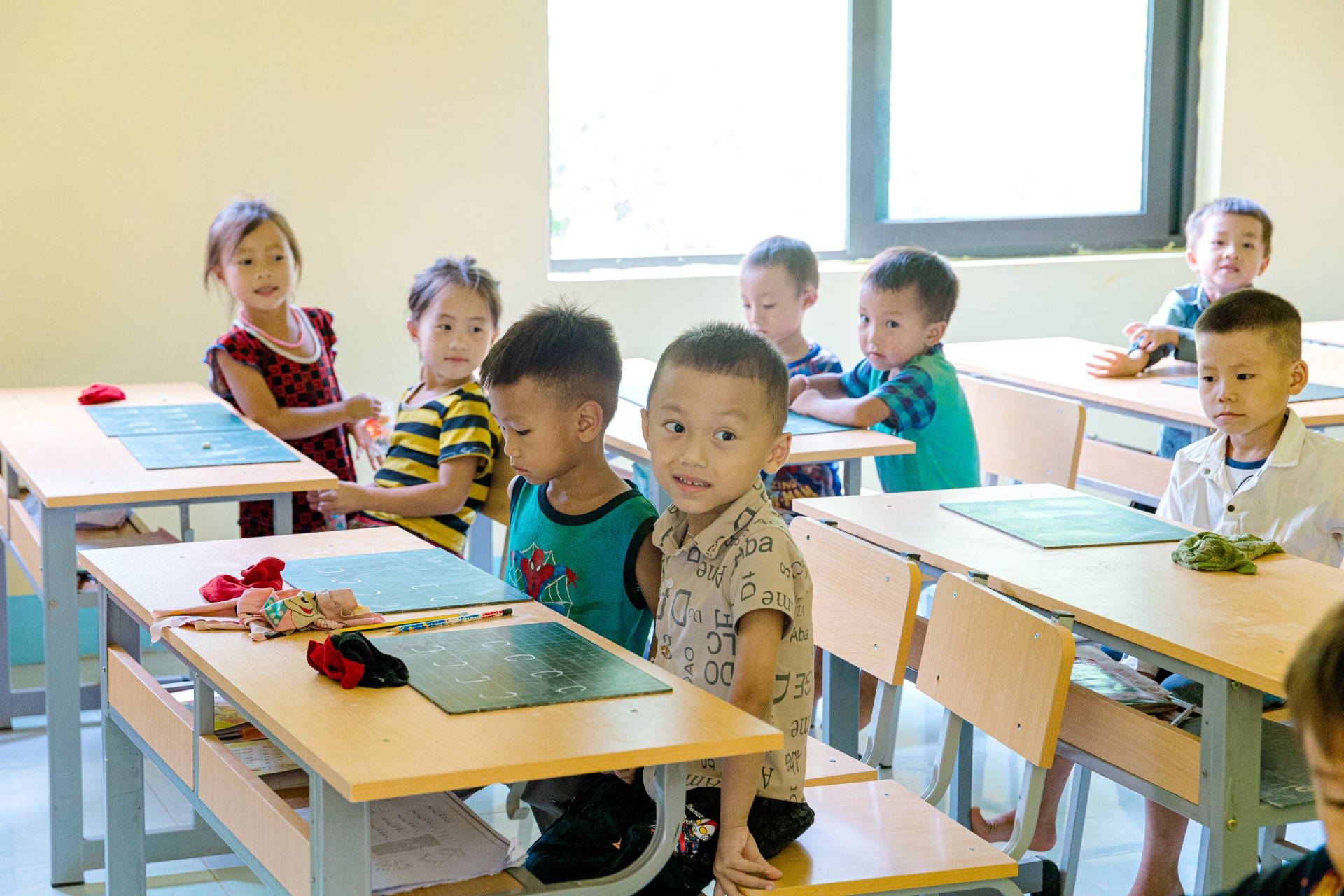(Các em học sinh Ha Cá háo hức trong những tiết học đầu của lớp học mới - ảnh phải