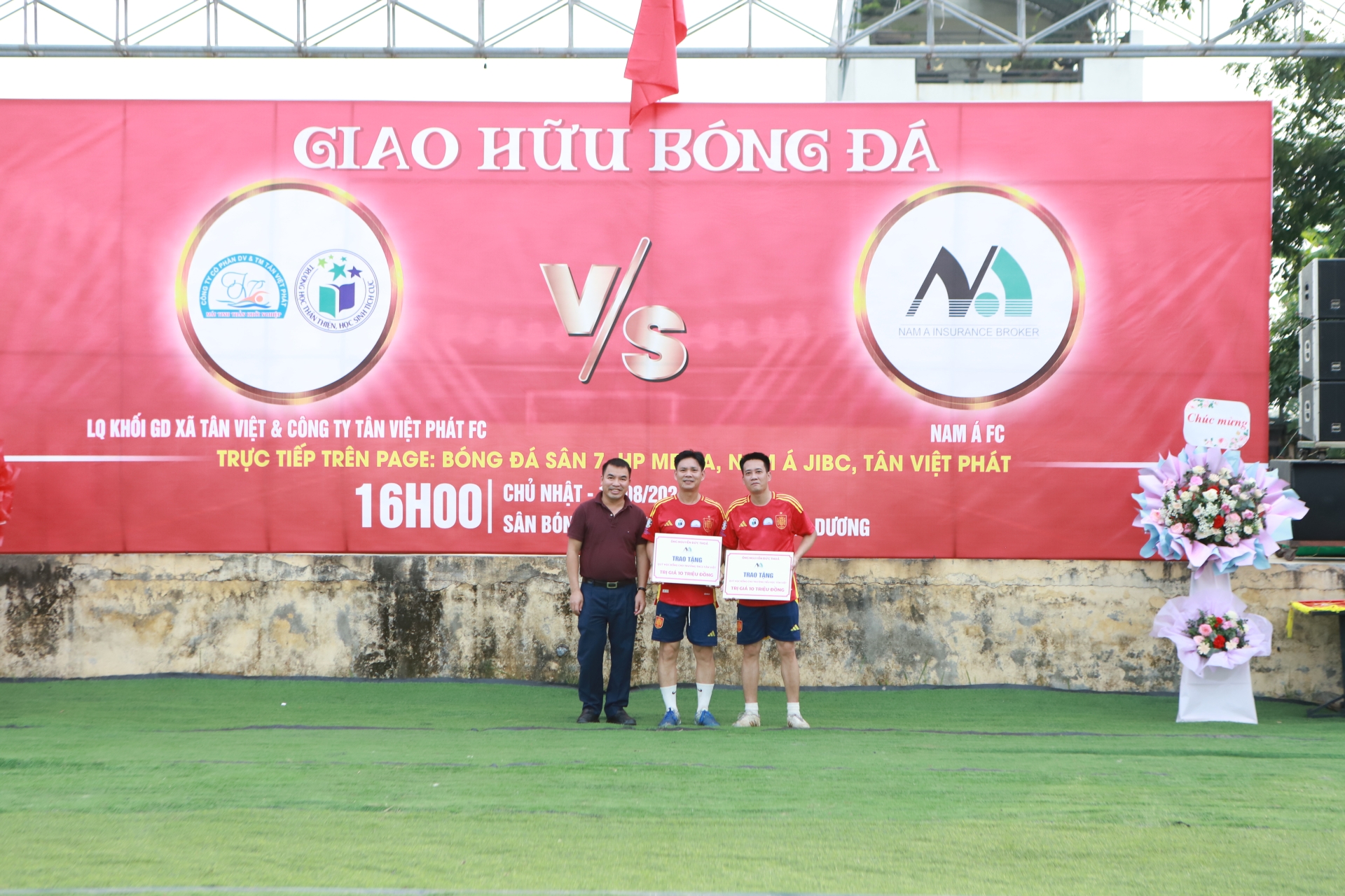 Kết thúc trận đấu Đội Liên quân Giáo dục xã Tân Việt - Tân Việt Phát đã giành chiến thắng 4-3 trước Nam Á FC, trong suốt trận đấu không có thẻ đỏ và thẻ vàng được trọng tài rút ra cho thấy tinh thần thể thao và hữu nghị của 2 đội. Ban tổ chức đã trao Huy chương vàng cho Đội liên quân khối giáo dục Tân Việt – Tân Việt Phát và huy chương bạc cho Nam Á FC chúc mừng hai đội đã cống hiến hết mình để mang lại những pha bóng đẹp của trận giao hữu.